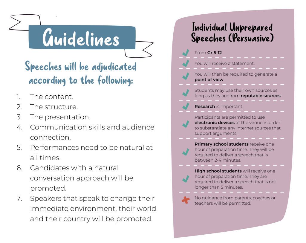 Provinsiale wenners en/of die beste sprekers word uitgenooi na die glansryke Nasionale Finaal wat plaasvind gedurende Oktober in Gauteng.
